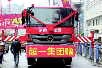 得知仁怀消防部队出警任务重,装备老化的消息后,唐超一出资450万元,为仁怀消防大队添置了一台登高达55米的大型消防车ღ◈。